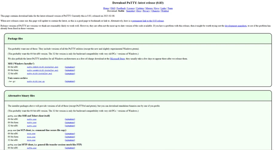Die offizielle Downloadseite ist putty.org (bzw. die direkte Projektseite unter chiark.greenend.org.uk). Wichtig: Lade PuTTY immer nur von der offiziellen Quelle herunter.