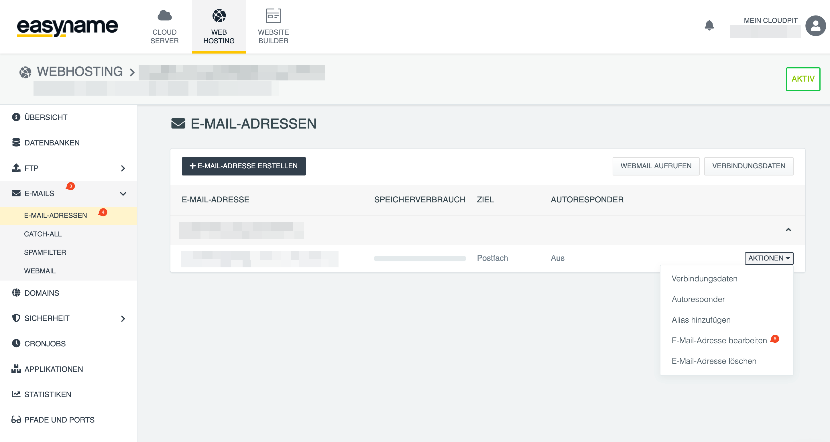 Klicken Sie beim gewünschten Postfach auf E-Mail-Postfach bearbeiten (3).