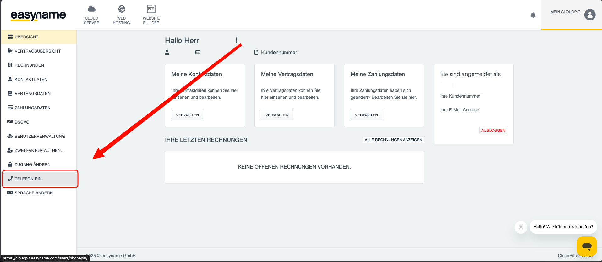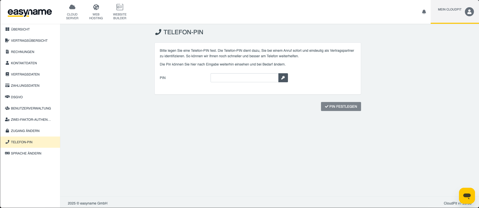 - Navigieren Sie auf der linken Seite zum Menüpunkt "Telefon-PIN"