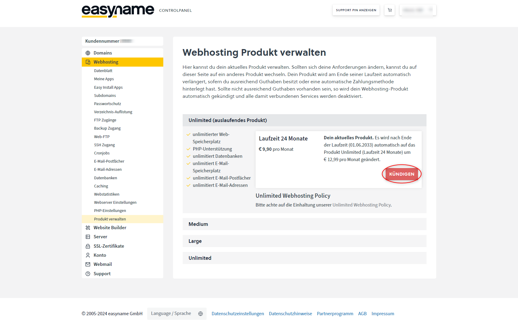 Wenn Sie Ihr Webhostingpaket kündigen oder löschen möchten, können Sie dies online über Ihren Kundenbereich durchführen.