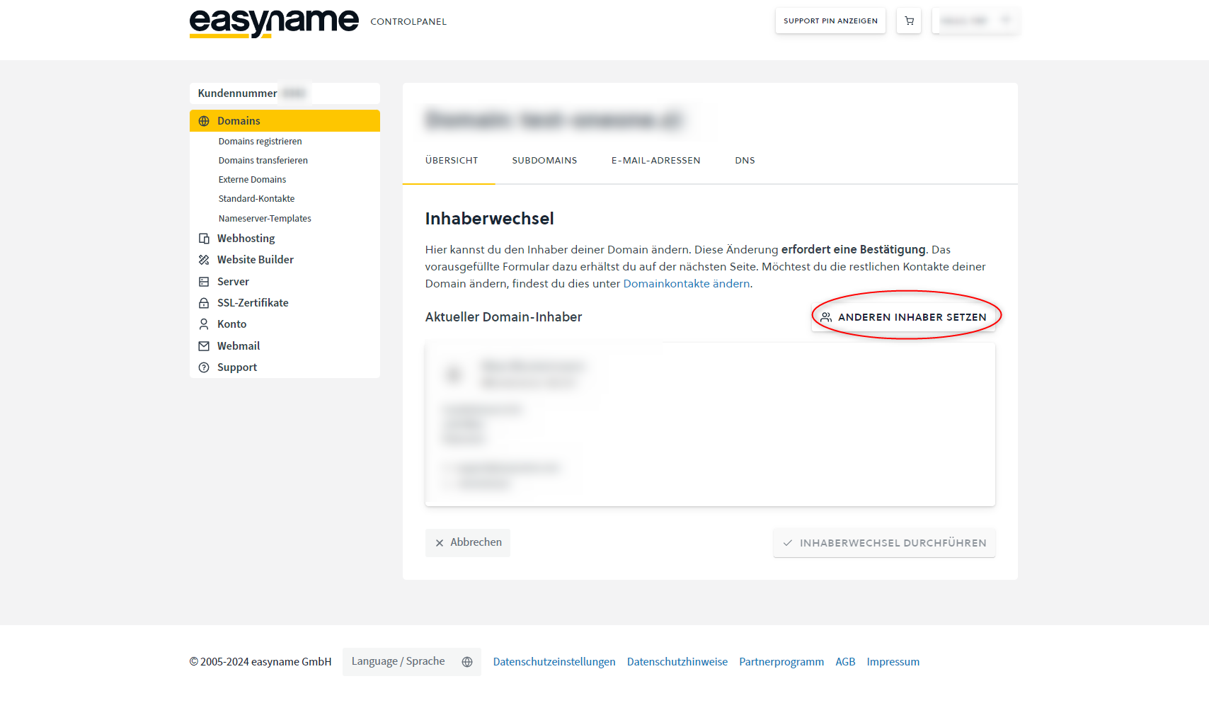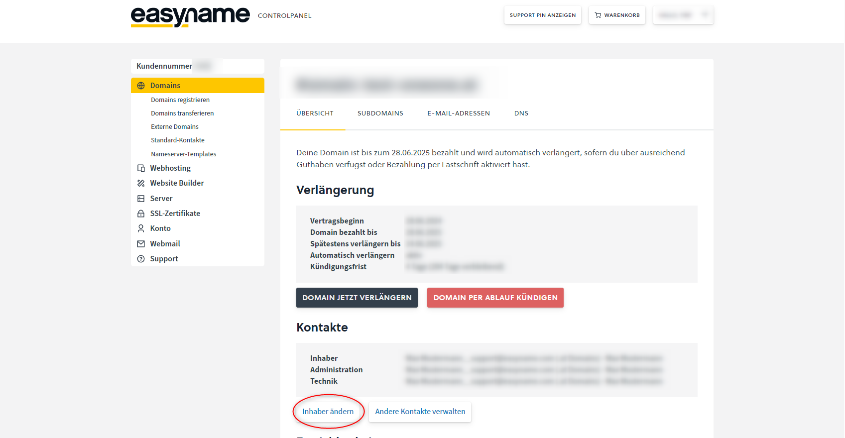 Ein Domaininhaberwechsel kann entweder über den easyname Support (CloudPit) oder direkt im easyname Controlpanel beantragt werden. Je nach Domain-Endung gelten unterschiedliche Abläufe und Anforderungen.