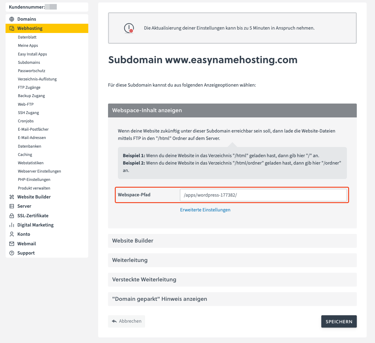→ diesen Verzeichnis-Pfad jetzt auch fürwww.easynamehosting.com setzen.