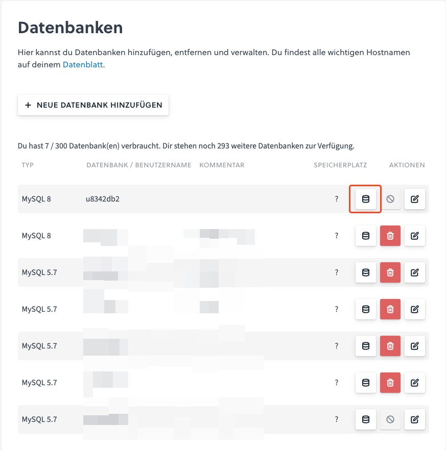 Navigieren Sie zu [Webhosting] → [Datenbanken]