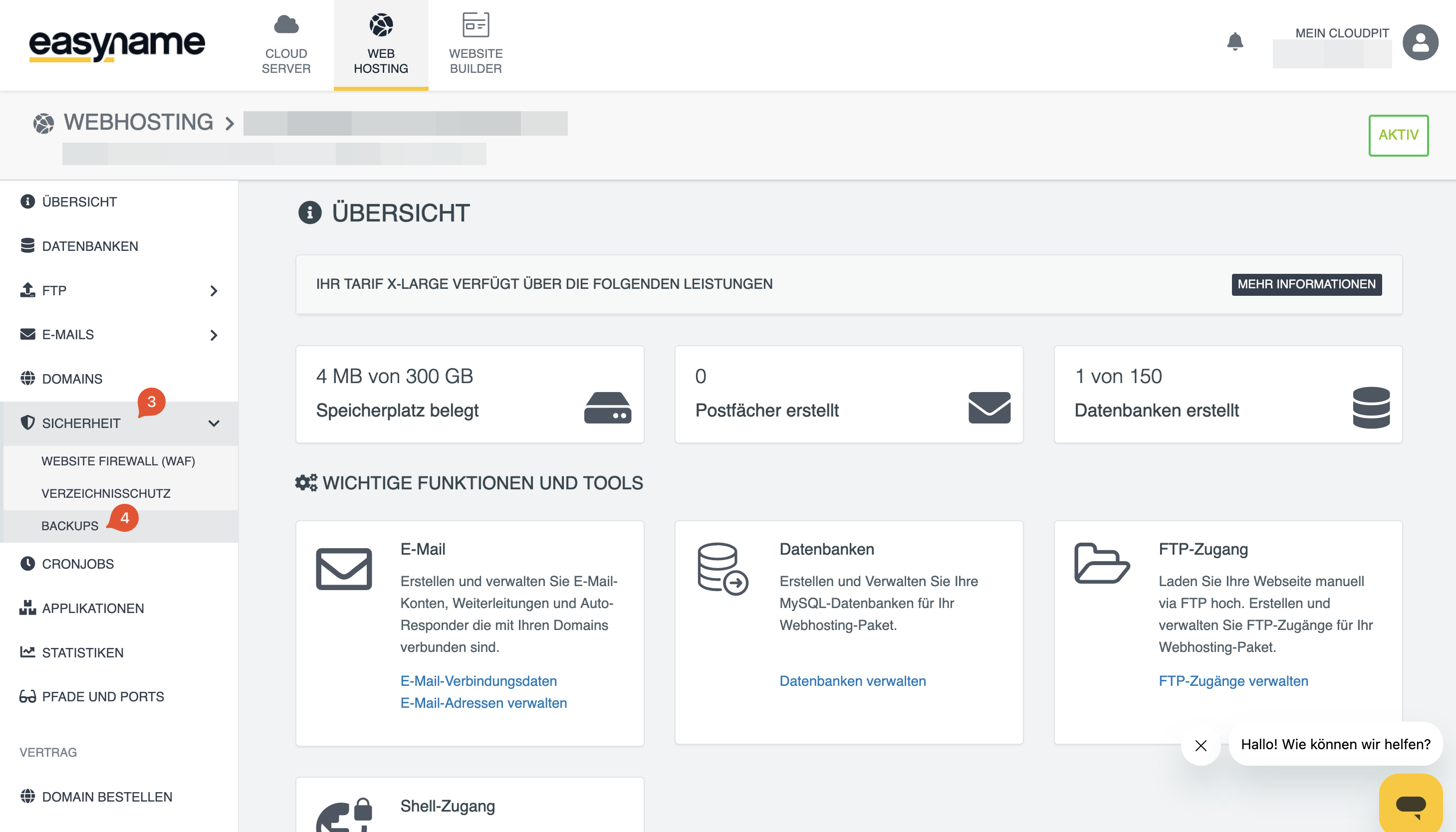 Unser System erstellt automatisch Backups Ihres gesamten Webspace. Diese Sicherungen stehen Ihnen jederzeit zur Verfügung, falls Sie ältere Versionen Ihrer Daten wiederherstellen möchten.