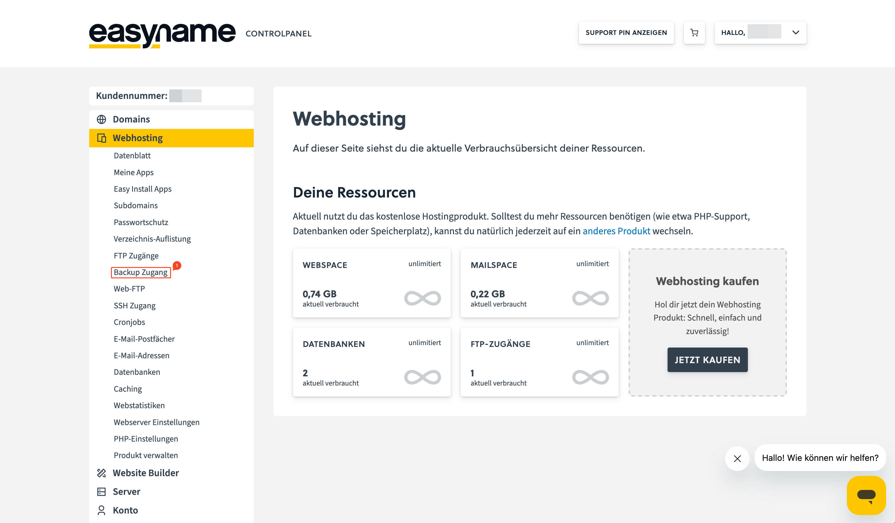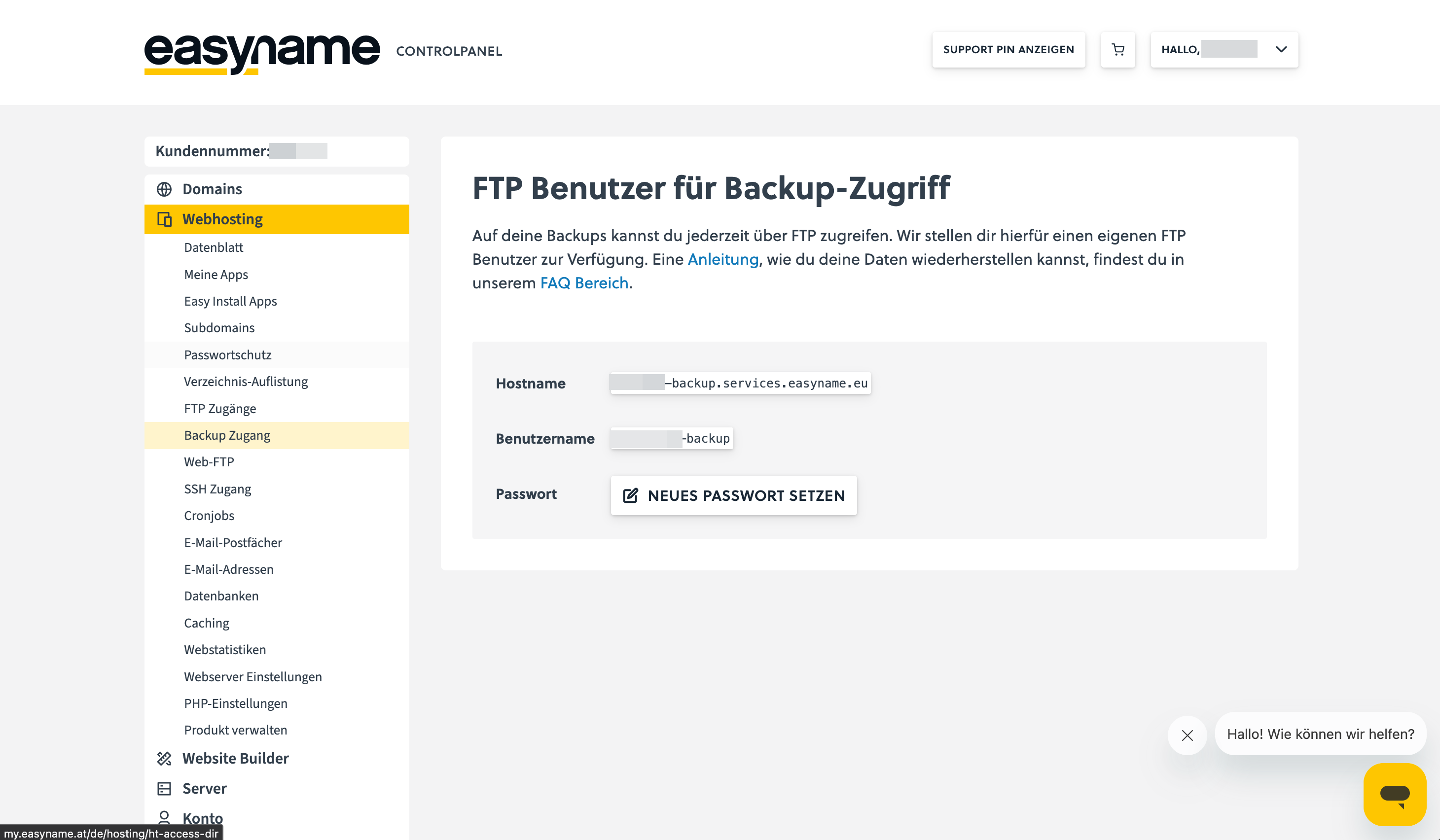 Dort werden Ihnen die FTP-Zugangsdaten angezeigt, mit denen Sie sich direkt am Backup-Server anmelden können.