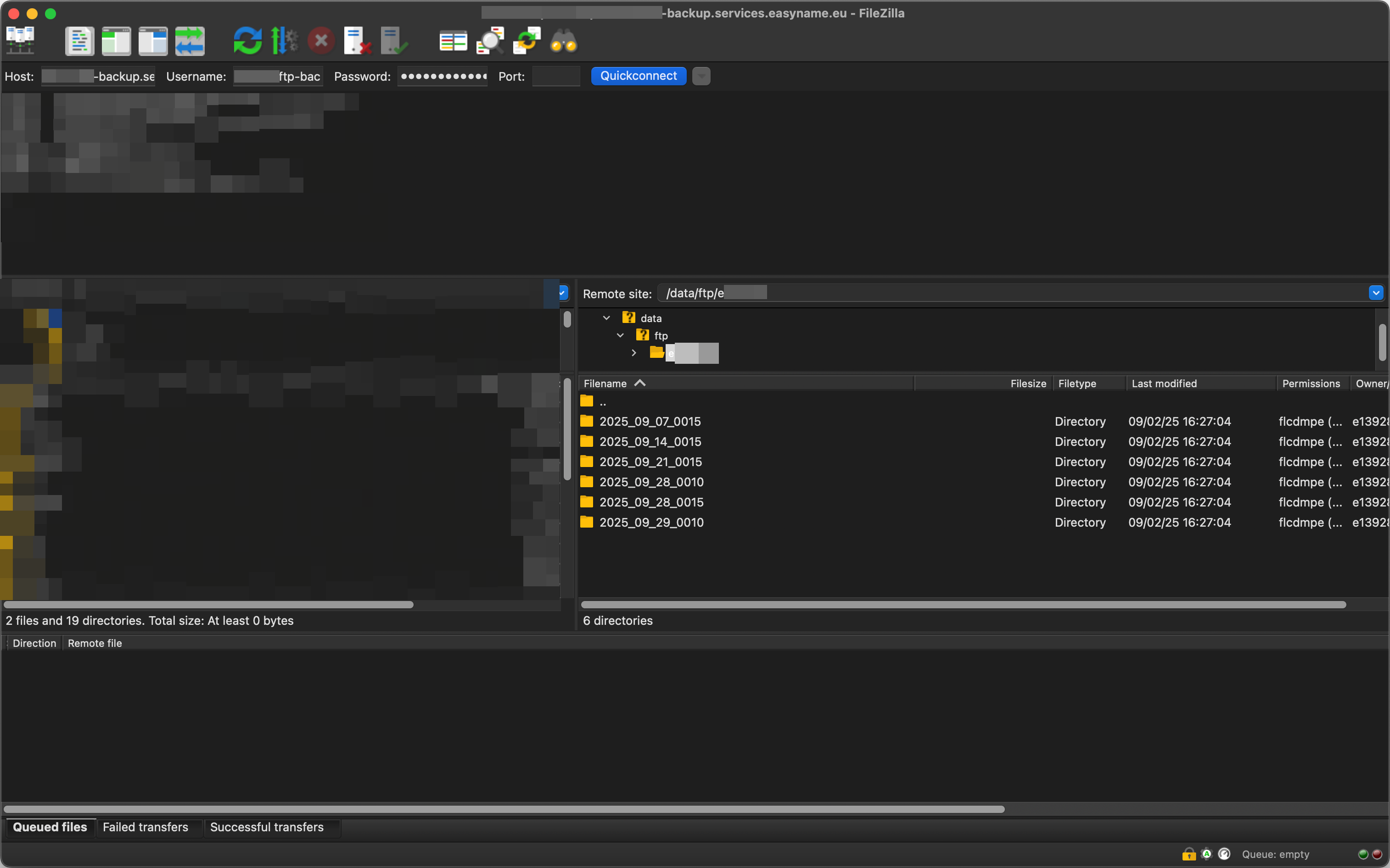 Um die Backups herunterzuladen, benötigen Sie ein FTP-Programm, z. B. FileZilla oder Cyberduck.